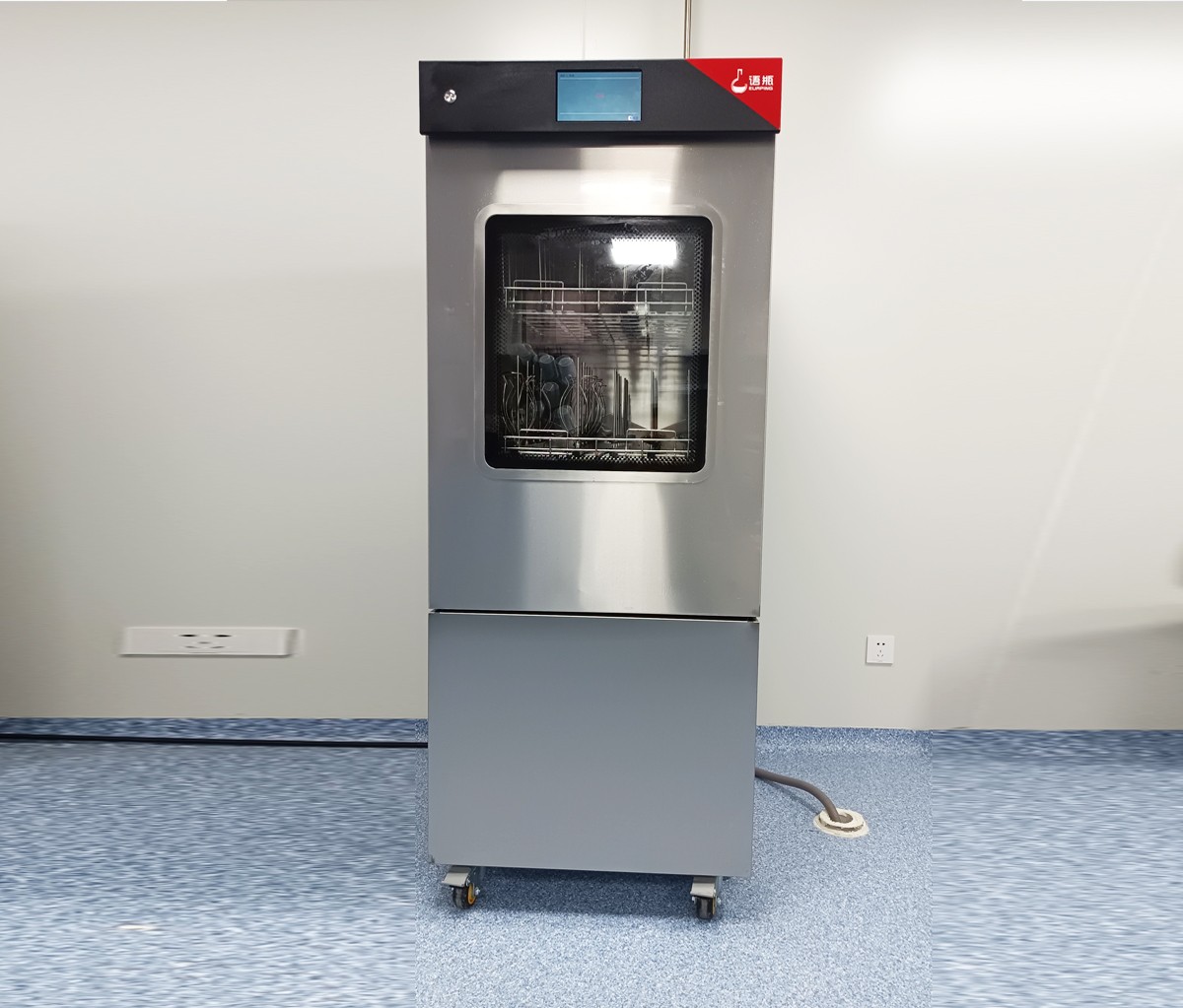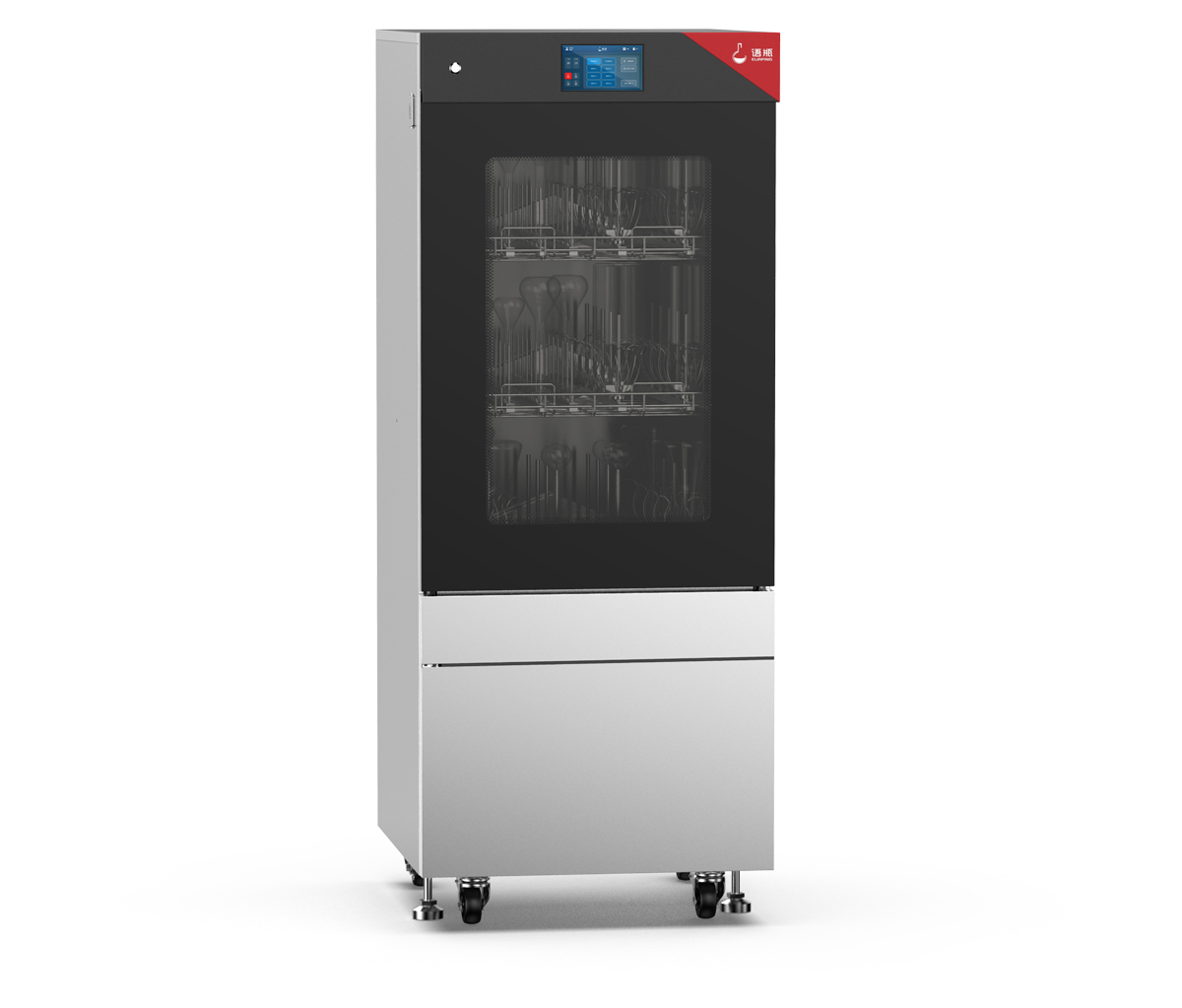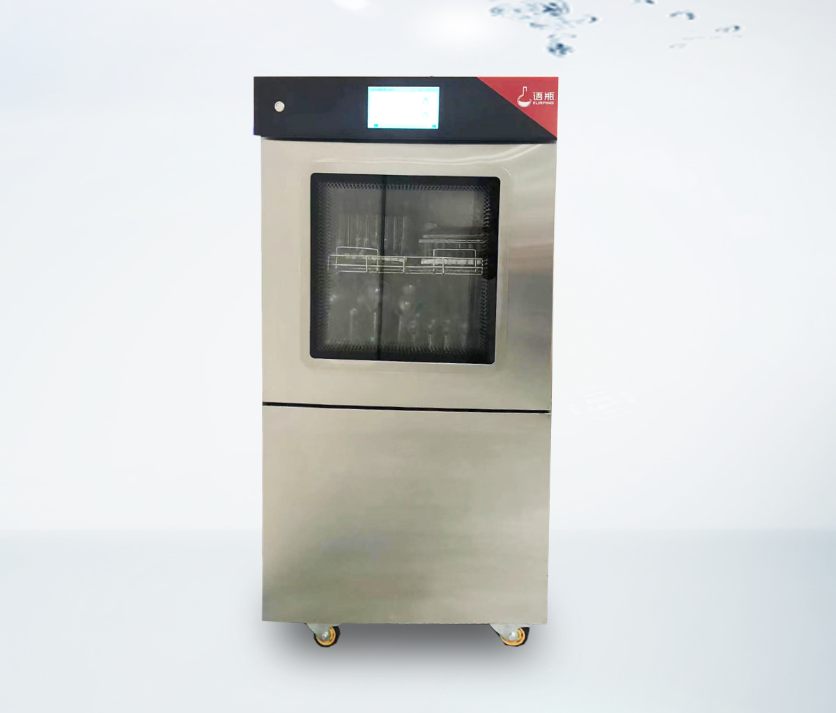 儀器結構外殼304不銹鋼;內(nèi)腔316L不銹鋼,可帶可視窗。清洗內(nèi)腔容積320L以上,內(nèi)腔壓模成型,上下兩層能同時清洗≥250ml容量瓶,單次清洗2ml色譜進樣瓶不少于720個,25ml容量瓶不少于360位,100ml容量瓶不少于192位