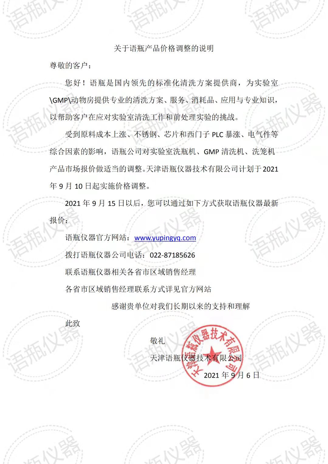語瓶產(chǎn)品價(jià)格調(diào)整