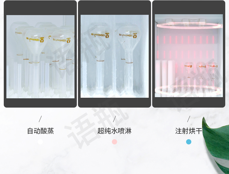 語瓶酸逆流清洗機(jī)主要基于硝酸在高溫下形成酸氣熏蒸器皿實(shí)現(xiàn)清潔的。 一、清洗過程加熱加熱板上的硝酸受熱形成硝酸蒸汽,充盈到器皿內(nèi)部和設(shè)備腔體里。 逆流沖洗:硝酸蒸汽遇到相對(duì)低溫的器皿內(nèi)壁,冷凝形