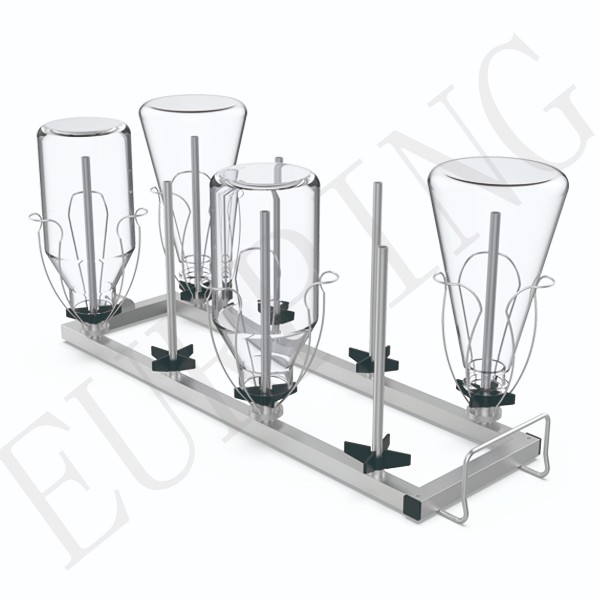 噴淋模塊籃架8位待清洗瓶尺寸:250-2000ml用于清洗藍(lán)蓋瓶、錐形瓶、容量瓶、三角瓶、燒瓶等,配有不銹鋼三瓣花籃瓶托、十字瓶托
