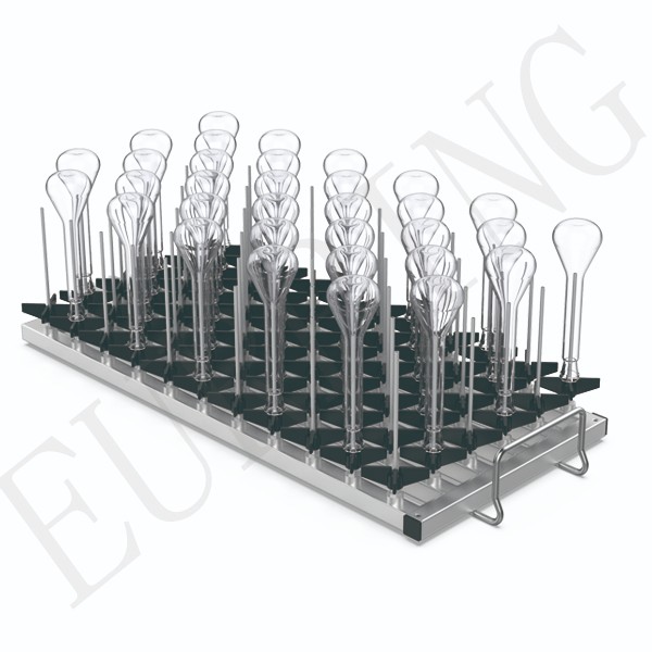噴淋模塊籃架66位待清洗瓶尺寸:10~50ml左右用于清洗錐形瓶、容量瓶、三角瓶、燒瓶等,配有十字瓶托注射式噴管:Φ3.2×H110mm*66個(gè)按照25ml容量瓶設(shè)計(jì),每個(gè)模塊能清洗66個(gè)25ml的容量瓶